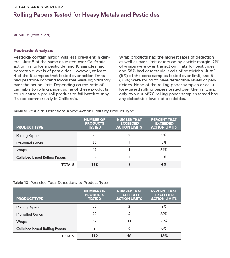 The analysis report below was prepared by Josh Wurzer, President, and Co-Founder of SC Laboratories, Inc. The report addresses a number of laboratory tests conducted on rolling papers purchased online and from various retailers throughout Santa Cruz, California. The rolling papers were tested for heavy metals and pesticides. Click on the pictures below to quickly view the results. The full analysis is also below in the FlipBook.